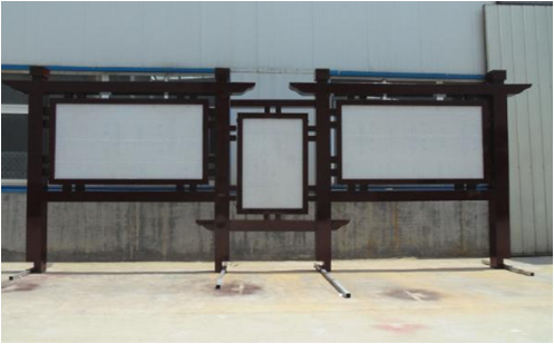 ?②鋼板和不銹鋼板的公告欄會采用鋼板烤漆的工藝,表面進行防腐處理。可埋于地面以下,也可用膨脹螺絲固定在硬化地板表面。為了遮擋陽光和雨水,宣傳欄一般會有頂棚。宣傳欄有前開門和后開門之分,前開門用玻璃鎖,后開門用普通鎖具就可以,內(nèi)容多是畫面或紙張內(nèi)容。木材的宣傳欄多用在園林中,這種宣傳欄不太實用,一般只能張貼戶外畫面。由于木質(zhì)的宣傳欄不能把內(nèi)容藏于玻璃內(nèi)部,只能在外面,所以內(nèi)容得不到保護。